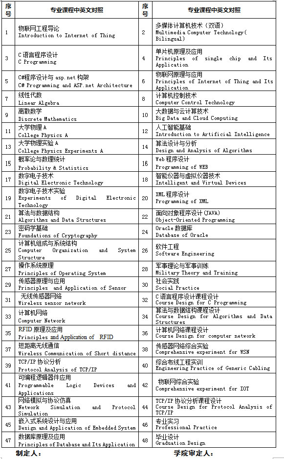 八、物联网工程专业课程设置