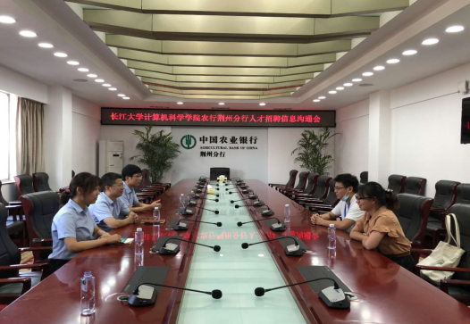 2020年9月2日15:00,农业银行荆州分行与bevictor伟德人才招聘信息沟通会在农业银行荆州分行办公室成功举行。此次招聘主要面向计算机及相关专业的2021届应届毕业本科生、研究生。参与此次会议的有农业银行荆州分行信息技术管理部总经理胡刚、高级专员刘自成、产品经理张之涵,bevictor伟德计算机科学学院就业专干余珺瑞、应届毕业研究生丁程程。