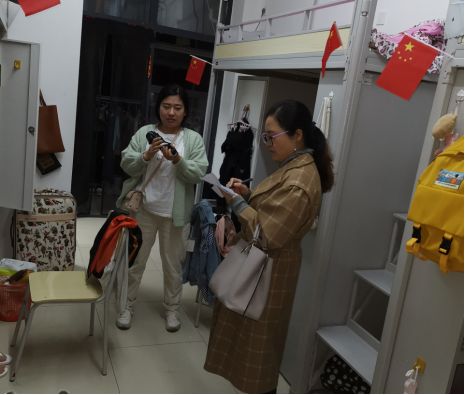 本次检查覆盖全体本科生和研究生寝室,分东、西校区同时进行。颜书记走访研究生寝室,了解研究生学习生活情况,并提醒研究生注意宿舍用电、防火、防盗等安全事项。其他辅导员分组检查本科生寝室。