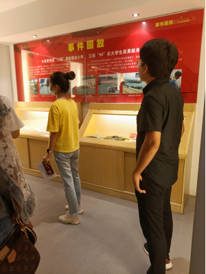 在讲解员引导下,同学们走上二楼,满怀崇高敬意,仔细聆听了陈及时、何东旭、方招等18名员工结成“人链”勇救落水儿童的英雄事迹,深切领悟“人链”精神内涵,许多同学在看到三位烈士的遗物时,都不禁潸然泪下。