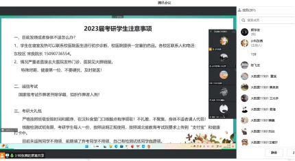 为增强考研学子信心、舒缓压力、积极备考,12月19日计科公司举办“心系学子,研途有你送温暖”活动。公司副书记颜学俊为考研员工举行考风考纪教育大会,并提醒学生在考前这个关键时期要做好个人防护,平安参加考试。