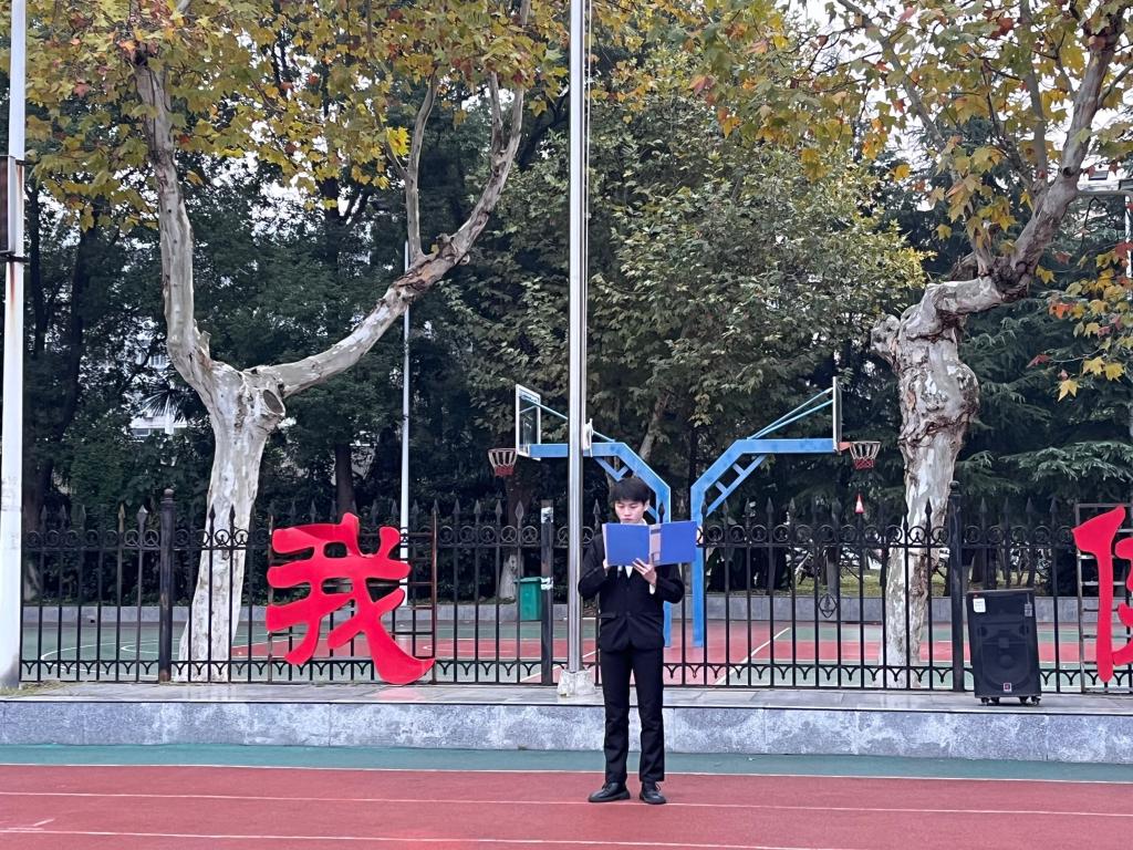 升完旗后,2022级员工代表司博进行国旗下演讲。司博同学以他自身经历为引,勉励同学们脚踏实地、敢于实践、勇于担当,争做青春最美追梦人。同时他祝愿所有同学都能在长大成就自我、找寻到属于自己的青春。司博同学慷慨激昂的陈词、饱含真情的语句深深激励了台下所有同学。