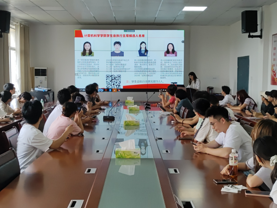会议伊始,张茜老师介绍了会议的议程。会议第一项由23届团委员工会执行主席王晓森对2023-2024年员工会的工作进行了汇报,他向同学们先简要介绍了员工会各部门职责情况,总结了这一年以来员工会所举办的活动并指出了当前存在的问题和挑战,也表达了对员工会未来的规划。随后,22级研究生贾瀛睿对研究生会工作进行了汇报,介绍了研究生的政治理论学习模式、研究生会举办的体育活动,她希望以后能有更多的人参与进来,将研究生会越办越好。