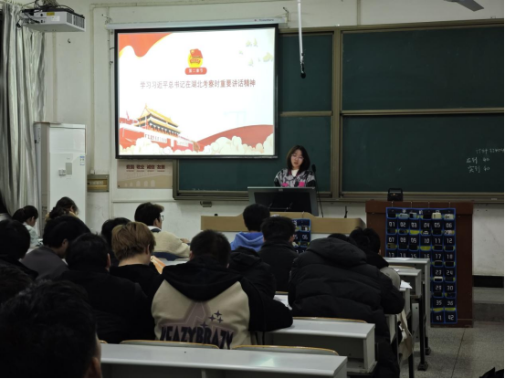 接着,李陈梦同学带领计科32404班通过观看视频等方式来学习习近平总书记给中国国际老员工创新大赛参赛员工代表的回信精神,并与同学们一同研读理解了习近平总书记在湖北考察时重要讲话精神。在学习习近平总书记的思想的基础上从中国国情出发,结合社会现象,国际局势让同学懂得了如何报效祖国。除此之外,她也帮助同学们了解习近平总书记关于促进高质量充分就业的重要讲话精神。同时,李陈梦同学积极响应公司号召带领同学们共同学习了《网络数据安全管理条例》,会议当天,充分调动了同学们积极性,呼吁大家注重网络安全,保护自己。