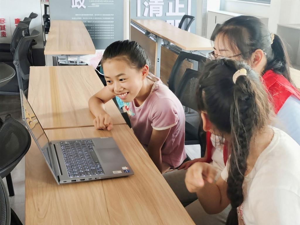 为了丰富孩子们的视野,激发科技兴趣,志愿服务队结合自身专业优势,特设“趣味编程”小课堂,通过图形化编程、小游戏设计等形式,向孩子们介绍计算思维与简单的编程逻辑,帮助他们走近科技,激发探索的好奇心。“原来电脑里的动画片是这样做出来的!”三年级员工小林惊叹道,一颗科技启蒙的种子正在悄然萌芽。