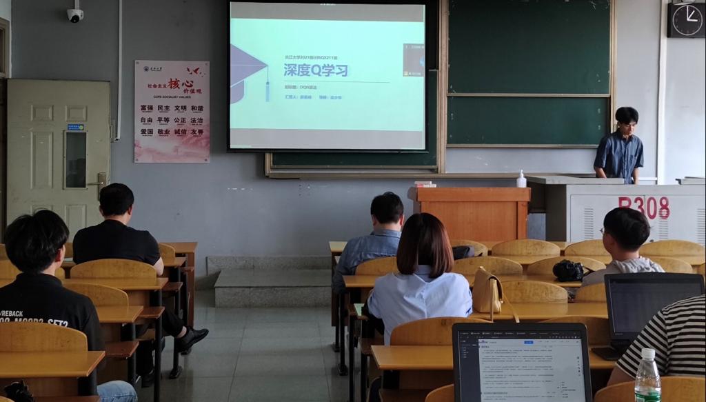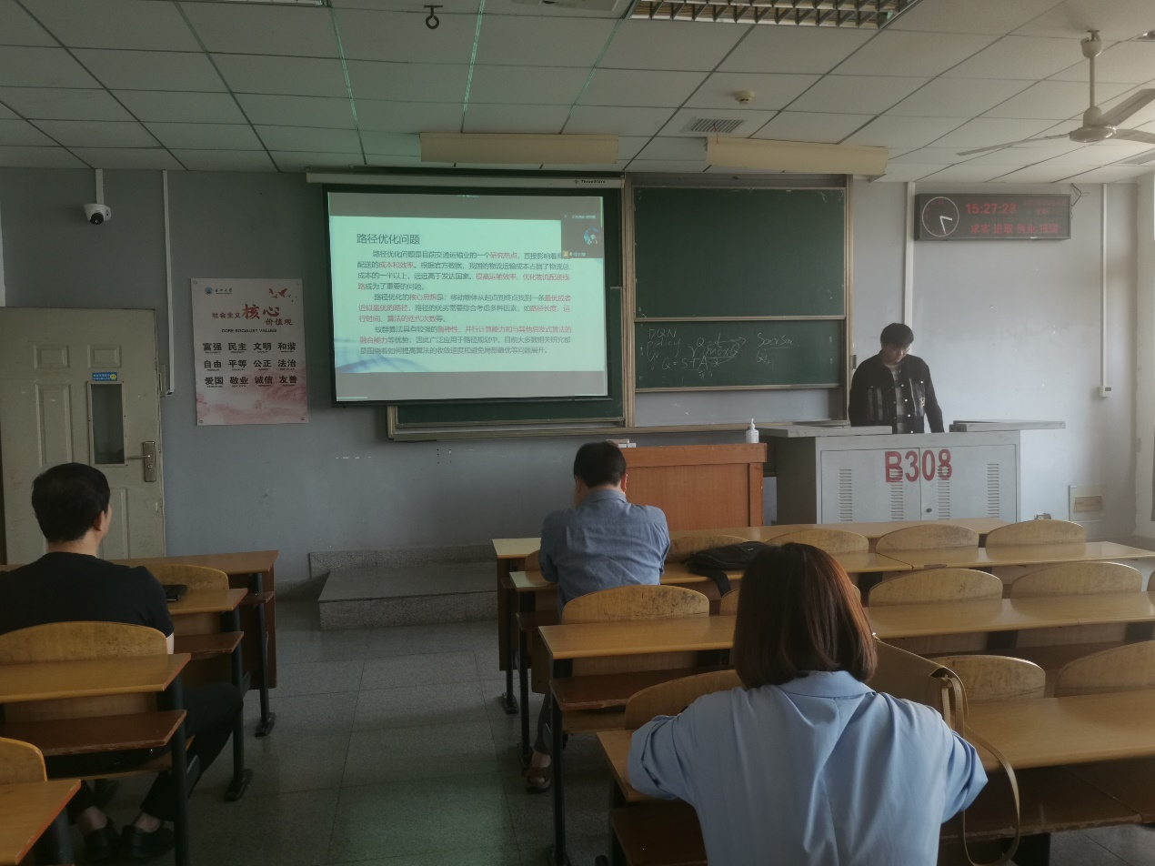 bevictor伟德9位研究生依次登台演讲,分别围绕各自的研究方向,为同学们分享了9个课题:基于属性加权朴素贝叶斯算法的OTSU图像分割方法,基于深度学习的无监督红外图像与可见光图像融合算法,深度Q学习-DQN算法原理,基于Bp神经网络的乳腺癌候选药选择,改进蚁群算法在路径优化中的应用,基于GAN~LSTM的连续管振动分析,基于传统双目立体视觉的车辆测距和目标识别研究,基于卷积神经网络的DSA脑血管分割算法研究,时序结构下工人动作预测的方法研究等内容。学术论文报告会已经成为同学们知识共享和传播的一种重要方式,在演讲过程中,导师与听众和演讲人针对相关研究成果互动、探讨。每名研究生演讲完后,四位导师从多角度对演讲员工的汇报进行仔细点评,对其研究内容可能遇到的科研困难进行指导,通过点评有效促进了研究生的成长。