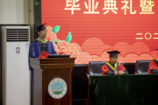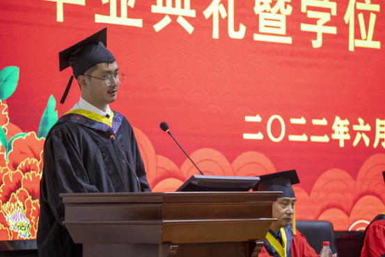 随后,公司本科生、研究生毕业代表依次上台发言。李志昂同学深深地感谢老师们的教诲和同学们的陪伴,并对公司未来的发展抱有很大期许;叶星妤同学分享了自身学习经历,并表示要不负青春,不负韶华,珍惜在校的每一寸光阴;张智亮同学对老师们给予最高的敬意与最诚挚的祝福,表达了对母校的不舍之情。