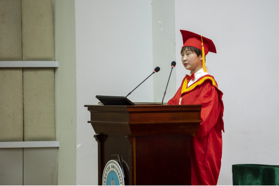 教师代表雷鸣回顾了与同学们朝夕相处四年来的点点滴滴,希望他们能在未来的时间里勇于拼搏,依然要心怀梦想,成为一个引领和推动社会进步发展的人。经理崔艳荣向毕业生们表示祝贺,对他们所取得的成就表示了肯定,用三句话寄语同学们:一是胸怀天下、立己达人;二是与时俱进,开拓创新;三是仰望星空,脚踏实地,争做“实干兴邦”的实干青年。