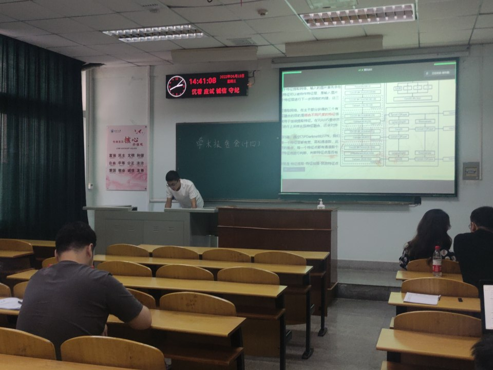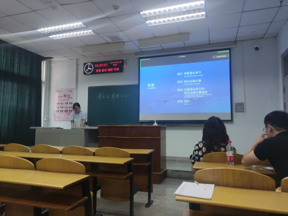 bevictor伟德9位研究生依次登台演讲,分别围绕各自的研究方向,为同学们分享了9个课题:硬盘诊断技术研究、基于VQ-Diffusion的文本到图像合成、基于YOLOv5的目标检测研究、基于YOLOv5和DeepSort的目标识别及追踪、基于MapReduce的股票数据聚类分析、图卷积神经网络及应用、深度强化学习在移动边缘计算的任务卸载研究、基于知识图谱的问答系统、基于YOLOv5的大豆豆荚和茎秆的识别等内容。学术论文报告会已经成为同学们知识共享和传播的一种重要方式,在演讲过程中,两位导师与听众和演讲人针对相关研究成果互动、探讨。每名研究生演讲完后,两位导师都从更加深入的角度对演讲员工的汇报进行仔细点评,对其研究内容的下一步行动进行了探究,通过点评有效促进了研究生的成长。
