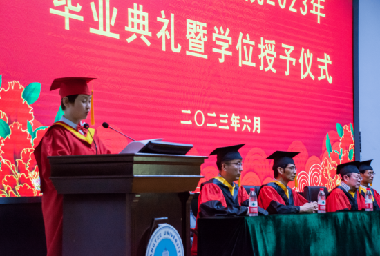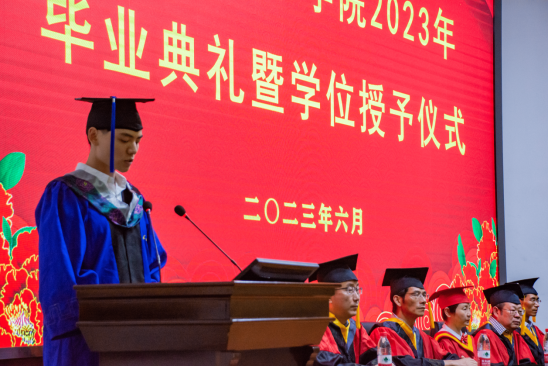 下午两点,毕业典礼在暖心视频的共同记忆中拉开帷幕,主持人宣布典礼正式开始,全体成员激昂奏唱庄严国歌。首先公司党委副书记颜学俊宣读2023届优秀毕业生名单,今年本院共有70名本科生和8名研究生被评为bevictor伟德“优秀毕业生”。颜书记鼓励优秀毕业生谦虚谨慎、再创佳绩,号召全体毕业生以优秀毕业生为榜样,勤奋学习、积极进取,努力成为新时代中国特色社会主义的建设者和接班人。