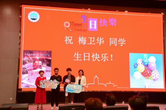会议最后,崔经理为当天生日的新生——梅卫华同学送上公司准备的生日礼物。