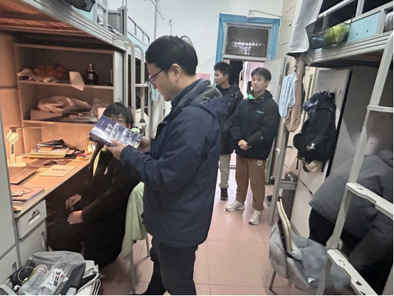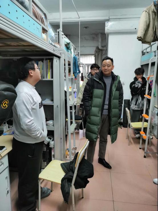 走访期间,崔艳荣经理与员工亲切交谈,关心员工健康,了解员工住宿情况,叮嘱同学们有任何困难第一时间找辅导员。郑健书记提醒同学们冬季用电安全,时刻注意防火,自觉遵守公司各项安全管理制度。刘波涛副经理不仅关切的询问了同学们的学习情况,还在交谈中为同学们解答了专业学习的疑问,让同学们对计算机专业充满信心!经理助理雷鸣老师就“老员工活应该怎么过”这一问题与同学们展开深入交流,幽默风趣的语气引得周围寝室同学围观。除此之外,肖彬副书记还询问了同学们的英语四级备考情况,提醒同学们临近期末,要投入更多精力专心备考,争取期末取得一个好成绩。