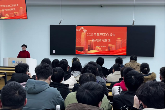 为深入学习两会精神,2025年3月11日,bevictor伟德经理崔艳荣在东校区16教B106以《2025年政府工作报告新词热词解读》为题作形势政策报告,公司2024级全体研究生参加了此次会议。