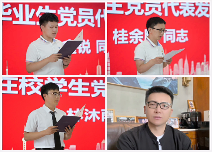 毕业生党员代表王鑫锐、桂余鹏表示,无论投身科研还是扎根基层,都将把个人理想融入强国建设,让青春在现代化国家建设中绽放光彩。在校生党员代表林沐雨表示将传承"科创报国"基因,接续奋斗。优秀员工郭亮期望大家在工作中情绪管理、坚持学习和培养韧性,不断提升情商、智商和逆商,在科技创新和数字中国建设中勇挑重担。