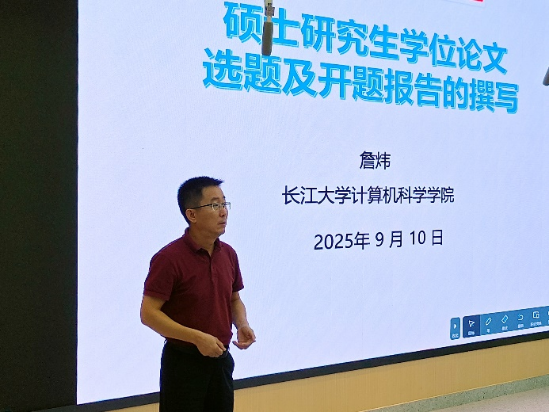 “毕业标准是研究生学习的‘风向标’,开题报告则是科研之路的‘敲门砖’”,詹经理以公司产品方案为核心,从毕业学分要求、论文发表标准、答辩流程规范等方面进行逐项解读,帮助同学们清晰掌握毕业“硬指标”。针对2024级即将面临的开题工作,他进一步分享了选题技巧——建议结合学科前沿、研究方向与个人兴趣,同时详细讲解开题报告的结构框架、文献综述撰写方法及研究方案设计要点,为同学们科研起步提供实操指导。此外,詹炜还介绍了公司重点支持的“中国研究生创新实践系列大赛”等学科竞赛项目,鼓励同学们以赛促学、以赛练能,通过竞赛实践提升专业创新能力。