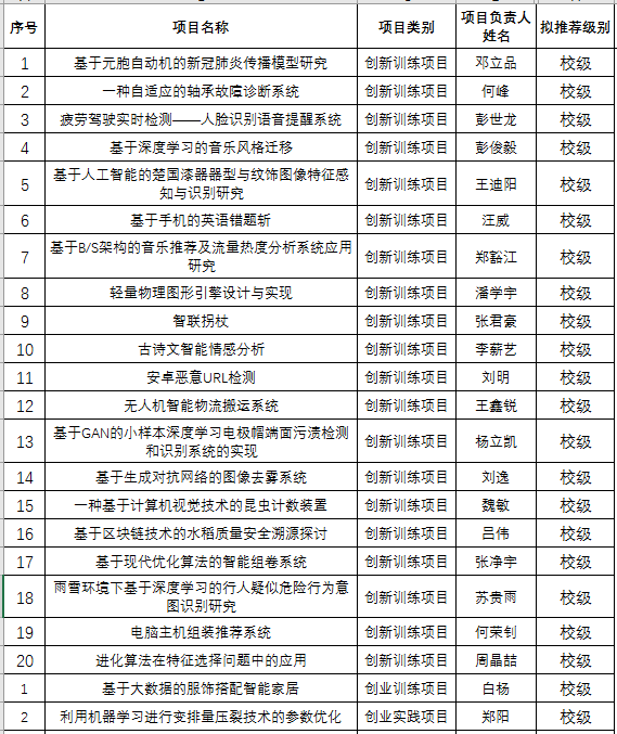 2021年第十四批“老员工创新创业训练计划”项目申报院内评审结果的公示
