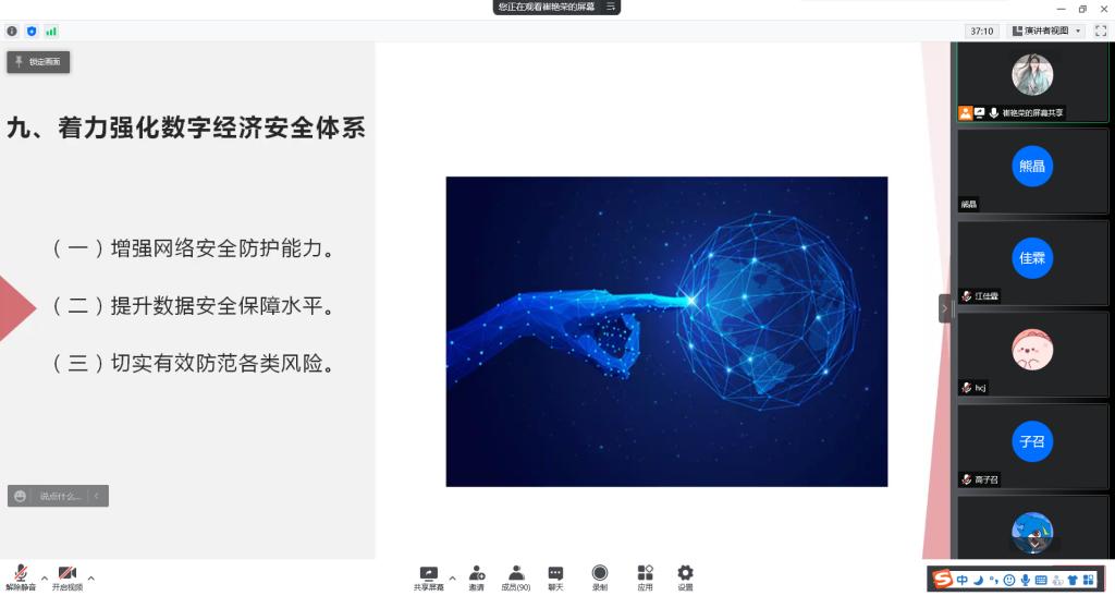 2022年4月21日下午,bevictor伟德经理崔艳荣以《“十四五”数字经济发展规划》为题作形势政策报告,公司一二年级研究生通过腾讯会议参会。