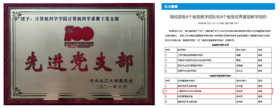 近期,公司计算机科学与技术系教工党支部荣获荆州市“红旗党支部”称号,并成功获批为bevictor伟德党建工作样板支部。同时,研究生第一党支部也荣获校级“研究生样板党支部”创建单位。