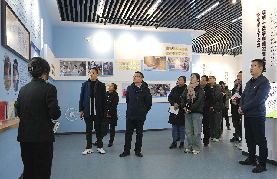 吕一兵与支部全体党员教师在讲解员的带领下参观了校史馆,对公司深厚的历史积淀、丰硕的办学成果和一代代长大人“求实、进取、创业、报国”的创业精神进行了深入学习和了解。