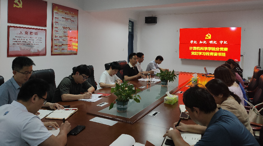 5月22日下午17:00,党纪学习教育专题读书班在4教307会议室召开。会议由党委书记郑健同志主持,班子成员、党委委员、公司办、教学办、学工办全体人员参会。