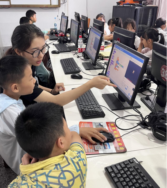 如何高效地开展教学?这是摆在支教队员面前的首要问题。根据实际校情和学情,支教队员到达当晚就迅速组织了一场集体备课,开启头脑风暴。“我认为可以从简单的游戏制作着手……”“我们可以组织一次摸底测试,了解员工的实际水平。”很快,支教队员就制定出教学计划,基于员工的实际水平,将编程夏令营分为基础班和进阶班两个班级分开授课。基础班教学主要是针对零基础员工,从最基础的电脑硬件使用和程序介绍开始,而进阶班则教员工进行更为复杂的编程项目操作。至此,每晚的集体备课成为了常态,讨论、反思、总结、提高,支教队不断摸索创新授课方式。
